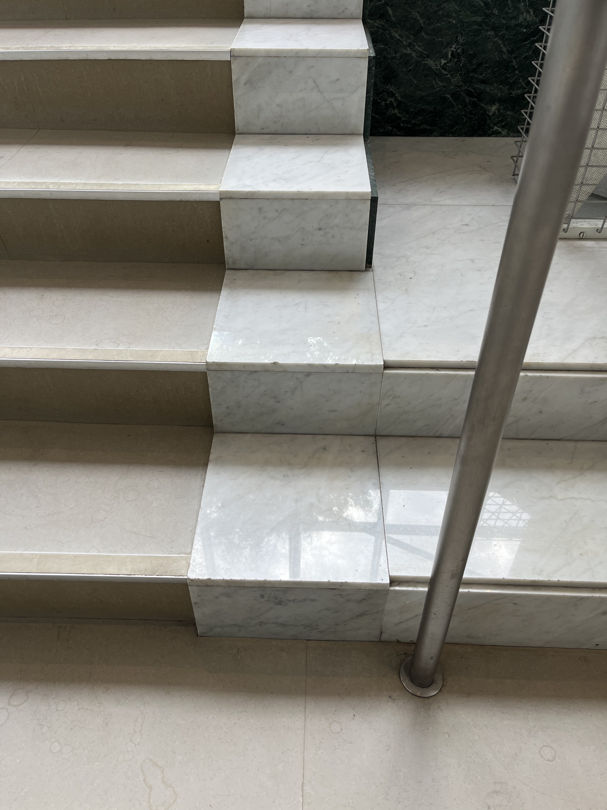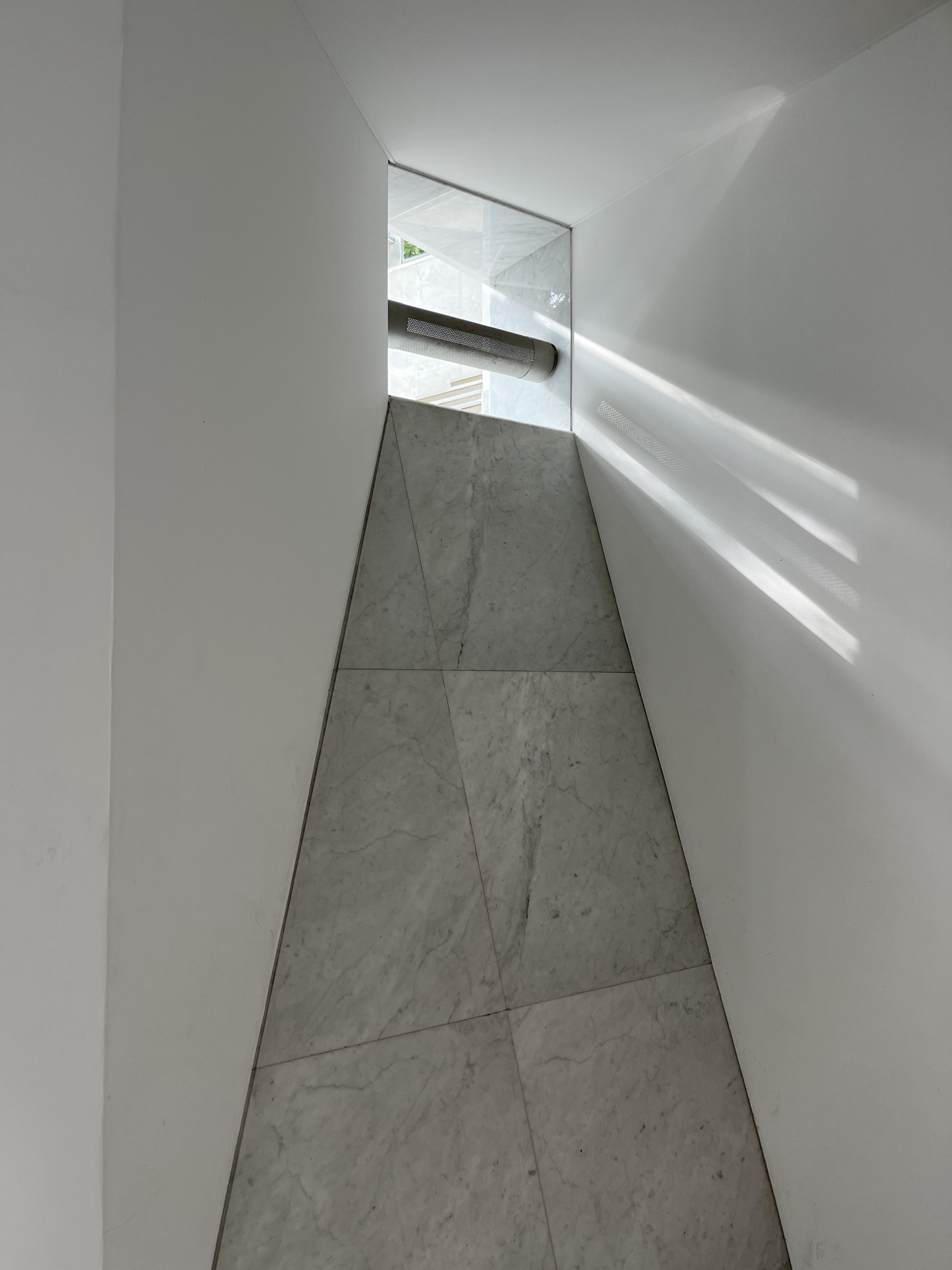 突然ですが美しいホールの写真から初めていきます。階段の仕上げと異なる大理石の仕上げは明かり取りのガラス目掛けて絞り込まれ光を演出しまるで彫刻のような存在感なのにガラス背後に配管を貫通させてしまうという美と機能を同列に扱う設計者のモダニズム感が表れているような気がして嬉しくなりました。こちらの写真は槇文彦氏設計の代官山「ヒルサイドテラス」G棟のホールの写真です。